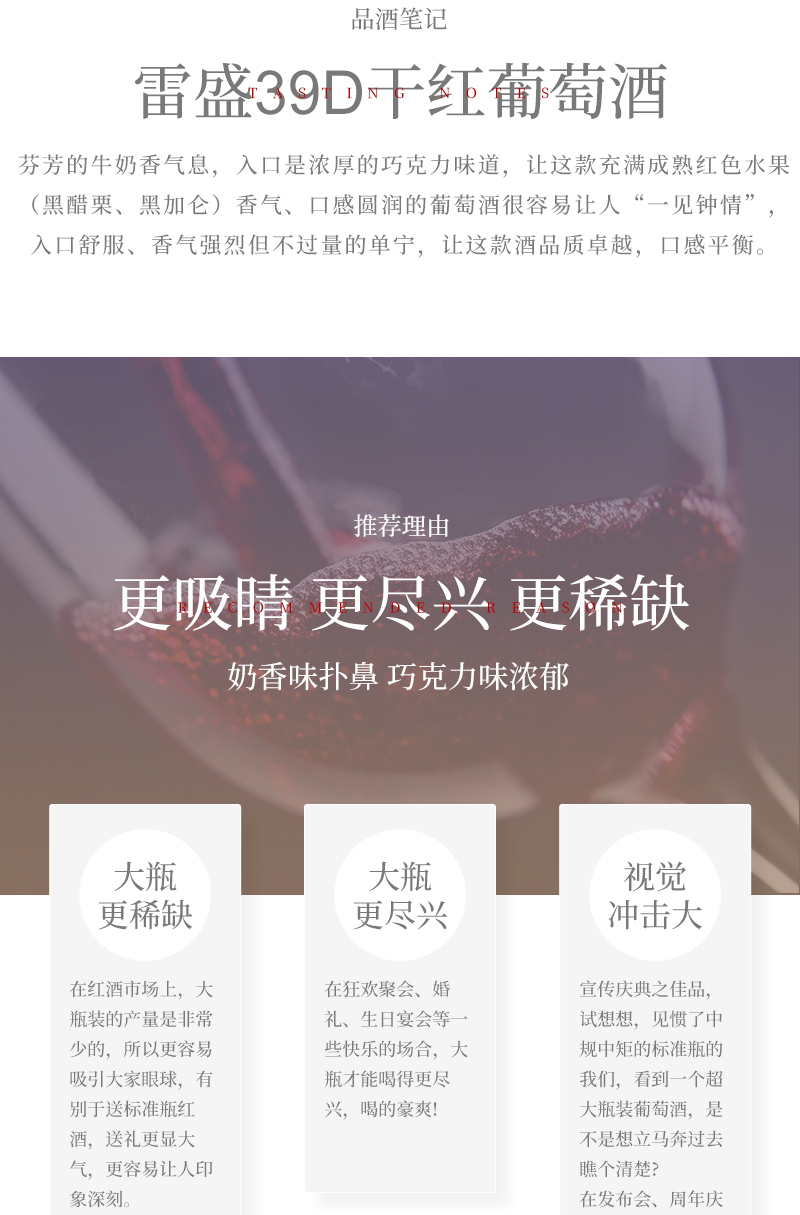雷盛红酒39D大瓶1.5L智利干红葡萄酒