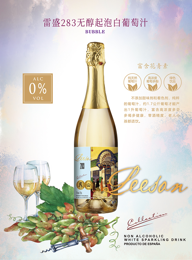 雷盛283西班牙无醇起泡白葡萄汁(一箱两瓶)