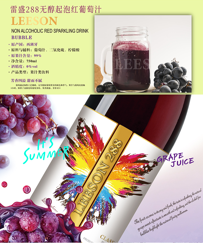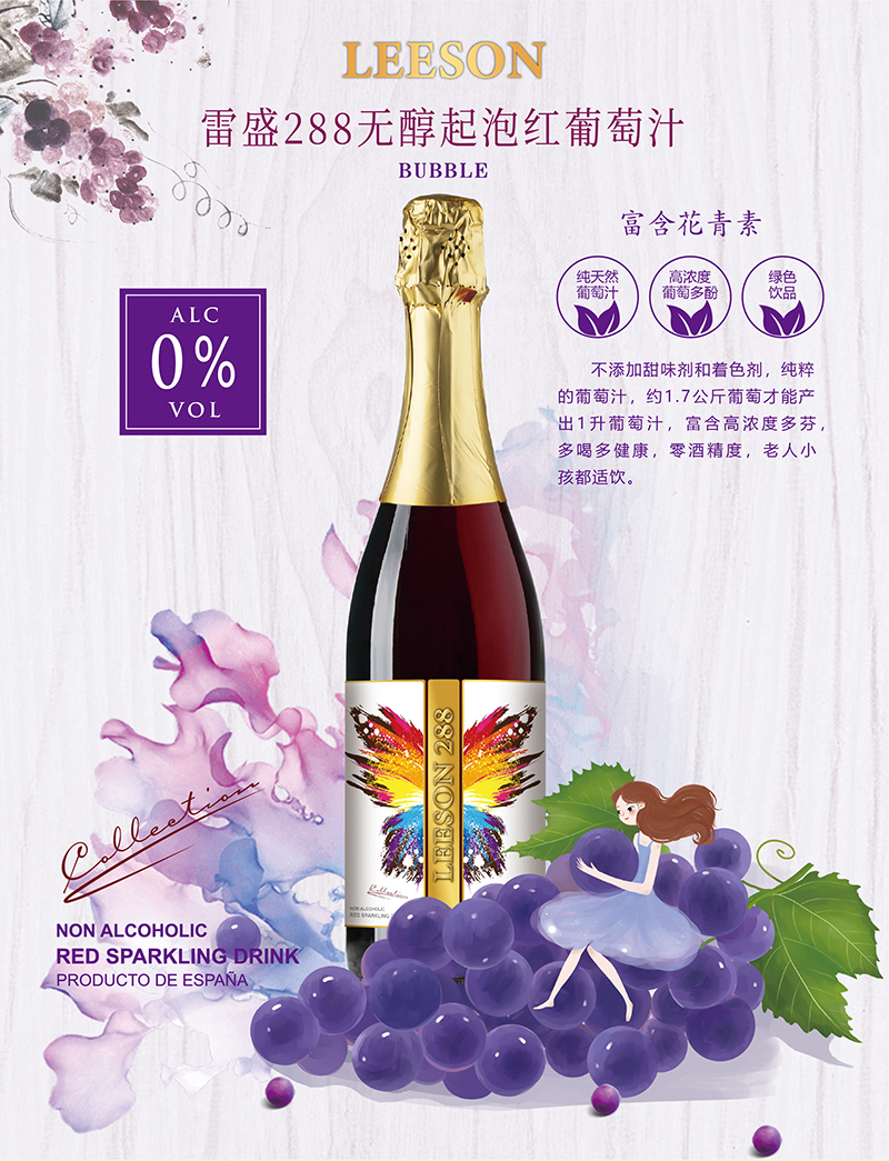 雷盛288西班牙无醇起泡红葡萄汁(一箱两瓶)