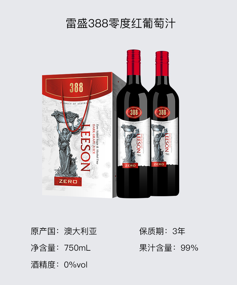 雷盛388澳大利亚零度红葡萄汁(一箱两瓶)