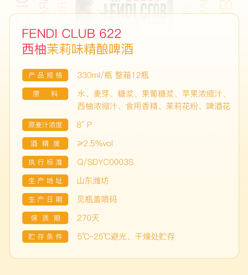 FENDI CLUB·622西柚茉莉味精酿啤酒(一箱12瓶)