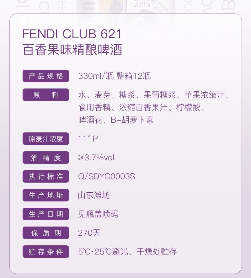 FENDI CLUB·621百香果味精酿啤酒(一箱12瓶)