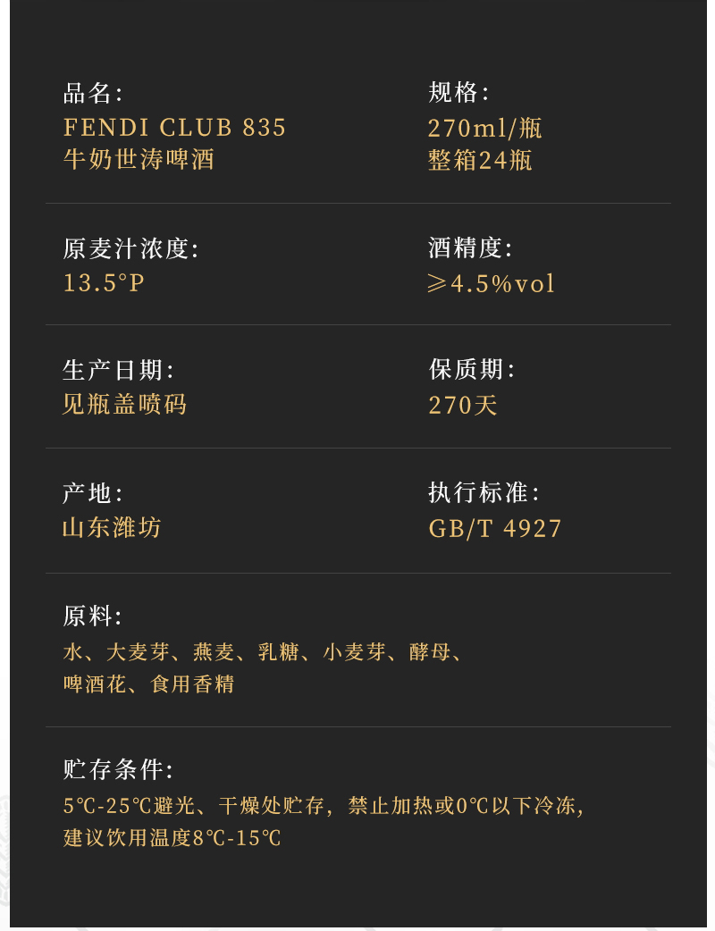 FENDI CLUB·835牛奶世涛啤酒(一箱24瓶)