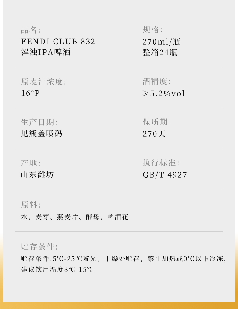 FENDI CLUB·832浑浊IPA啤酒(一箱24瓶)