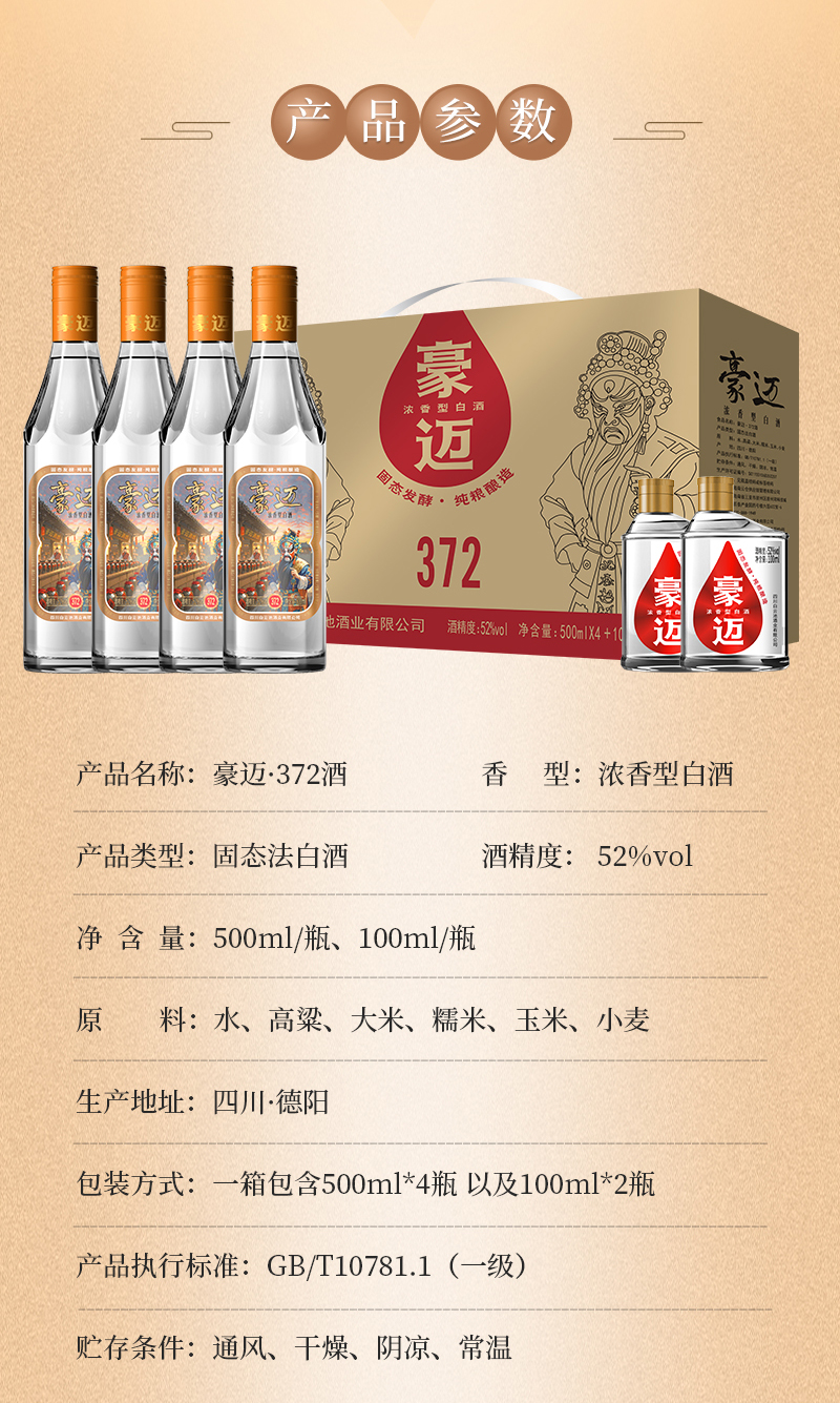 豪迈372浓香型白酒(一箱六瓶,四大两小)